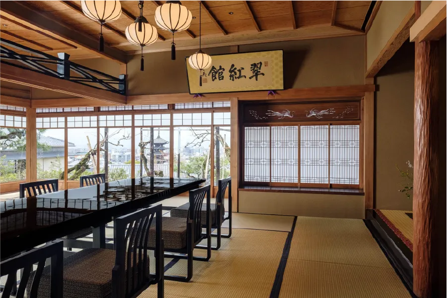 八坂の塔を正面に、京都市内を一望できるお部屋です。