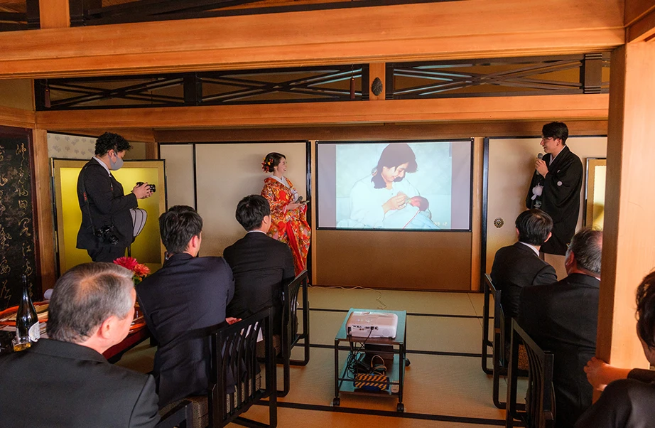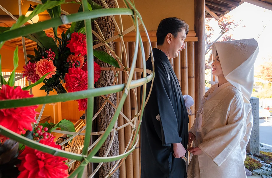 女将さんをはじめ、スタッフの皆さまの温かいおもてなしと、安定感のあるご対応、お人柄、笑顔に心を掴まれ、こちらでの披露宴を即決しました。美味しいお料理や、京都の歴史文化を感じさせる建屋や庭園、京都市内を一望できる素晴らしい景観も決め手の一つでした。