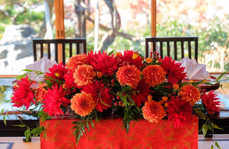 装花はご紹介いただいたフローリストの方にお願いをしました。華やかながら品があり、会場と衣裳が引き立つ装花で、大変満足しております。メールでのやり取りでもスムーズにこちらの要望を汲み取っていただき、大変助かりました。