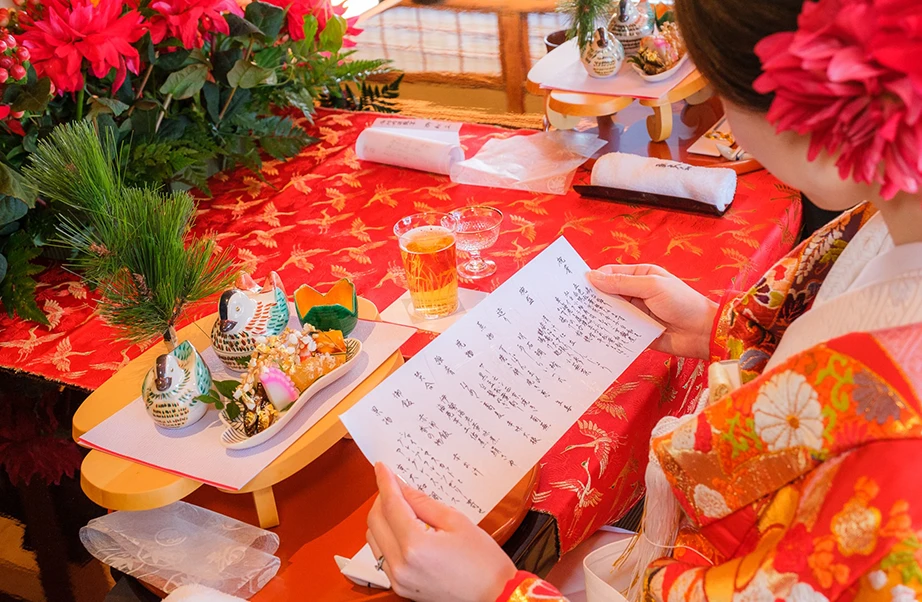 披露宴の準備にあたっては、ご担当者さまから、当日までの段取りをわかりやすくお示しいただき、その後も細やかにフォローしていただけました。結婚式準備や入籍、転居など慌ただしい中で、ご担当者さまとのやり取りには非常に励まされ、前向きに楽しく準備を進めることができました。また、招待状の制作や、親族の前泊や着付けの手配、衣裳、撮影、装花の手配など、外部とのやり取りを私たちに代わって進めていただいたことも、大変助かりました。