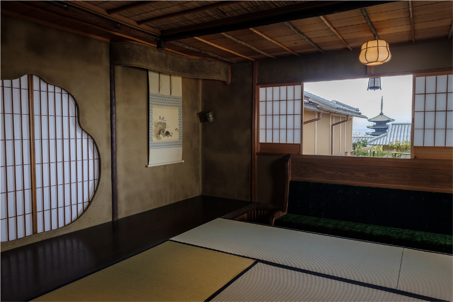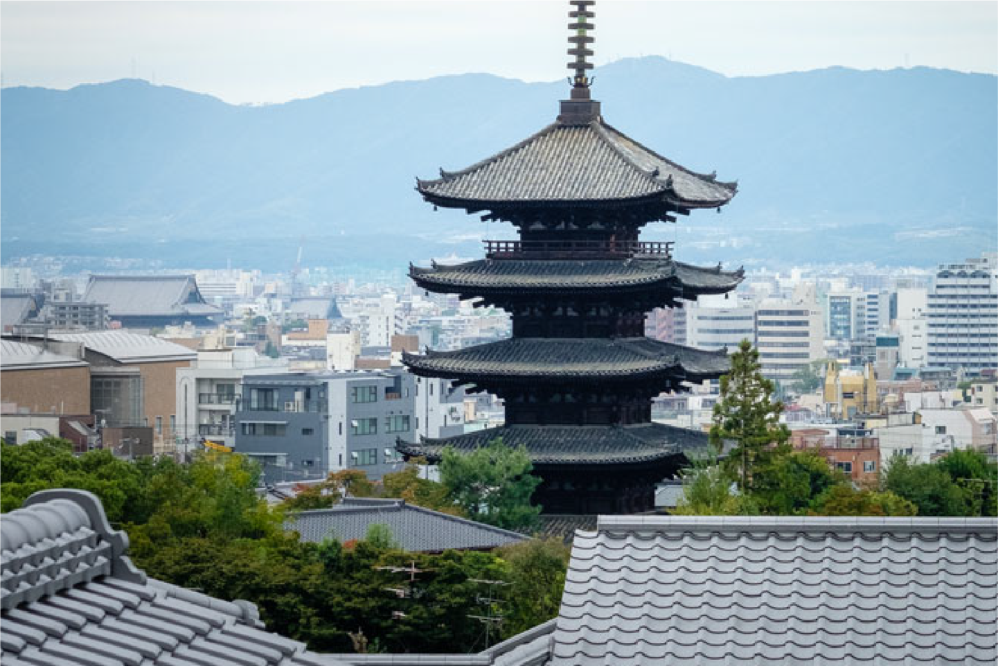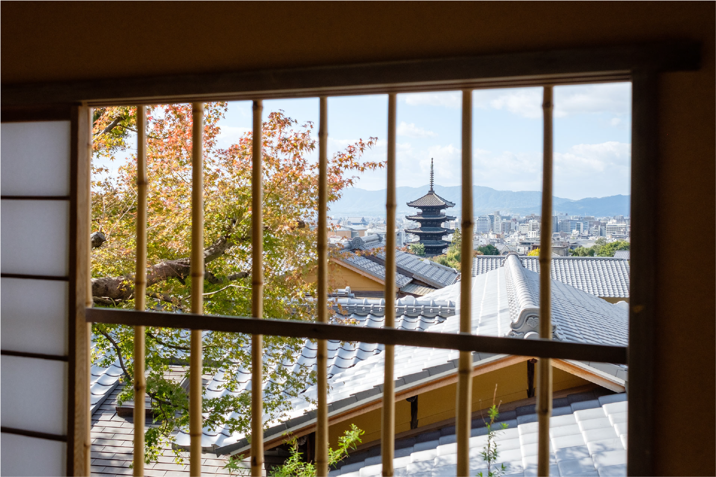 展望台・送陽亭をはじめ、庭園各所からは、「八坂の塔」など京都の町並みを一望できます。